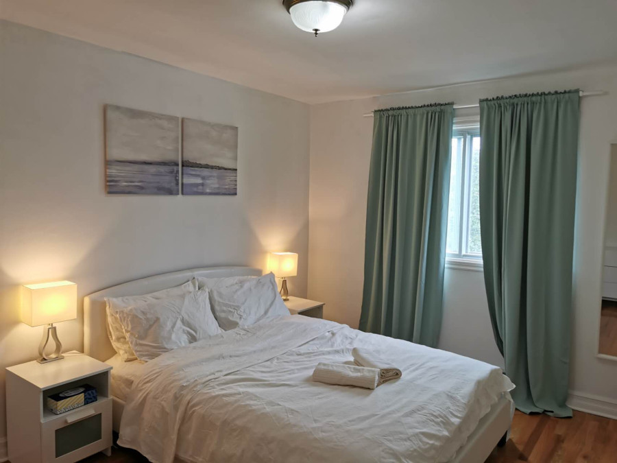 Duplex单边位置1楼大6半,新装修$2500 (欢迎留学生单独租房间全包980/月起,可3人合租),有3个独立睡房和一个室外免费车位。后院为停用游泳池。整洁安静安全。包洗衣机干衣机,也可按需配置家俱。Angrignon购物中心有Canadian Tire1元连锁店、电影院和沃尔玛超市等等,开车15分钟内可达市中心。住满一年送一个月免费!