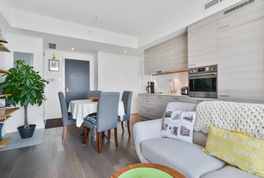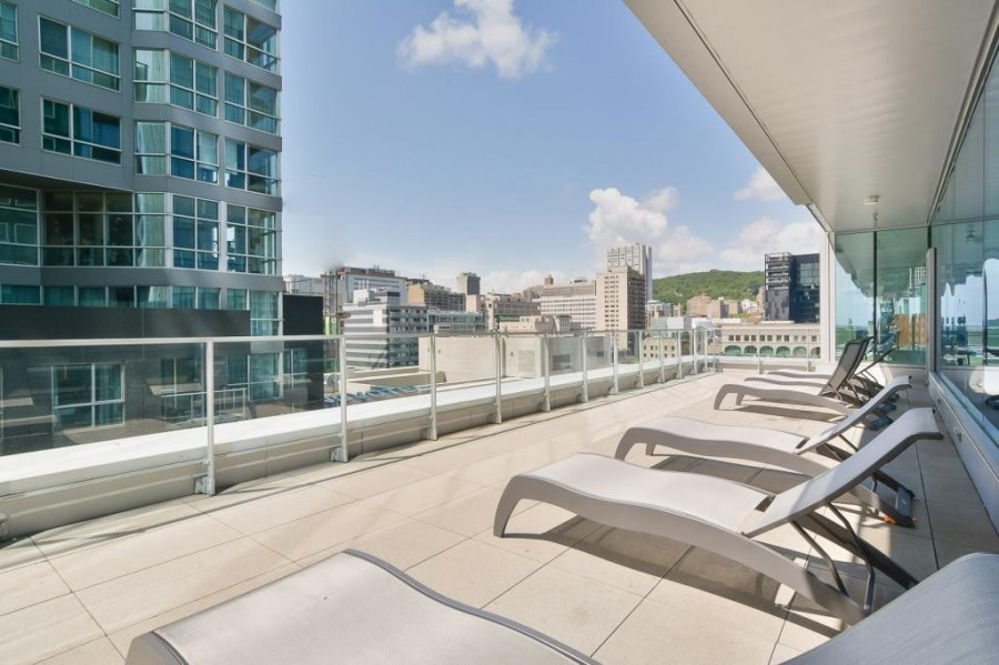Icone大楼里有游泳池,桑拿房,健身房,24小时的安保服务。该房源位于22层,楼层高可俯瞰蒙城市中心,视野景观好,带一个室内停车库,叫价$509000。
