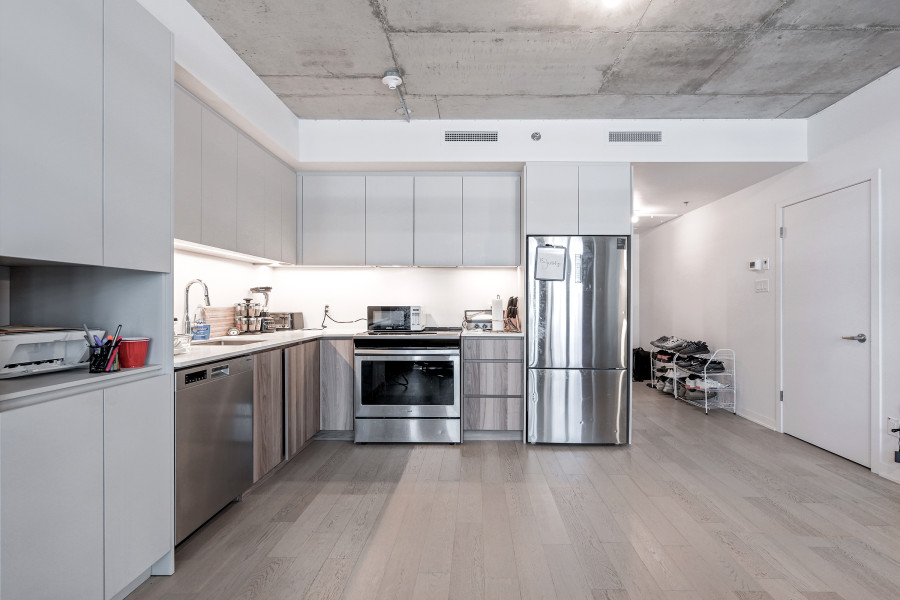 高档condo3个半。全部精装,炉头冰箱洗碗机洗衣机干衣机。游泳池健身房,冷暖空调,包地下车库车位。如需要可提供简单家具。地理位置良好,高速发达。紧邻DIX30。南岸轻轨列车(REM)直达市中心。地址: