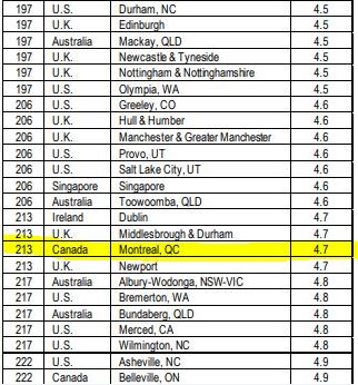 据加拿大赫芬顿邮报(HuffPost Canada)最新报道,美国市场研究公司Demographia公布的新一年度“全球住房负担报告”显示,在300多个城市中,蒙特利尔排名第213位。