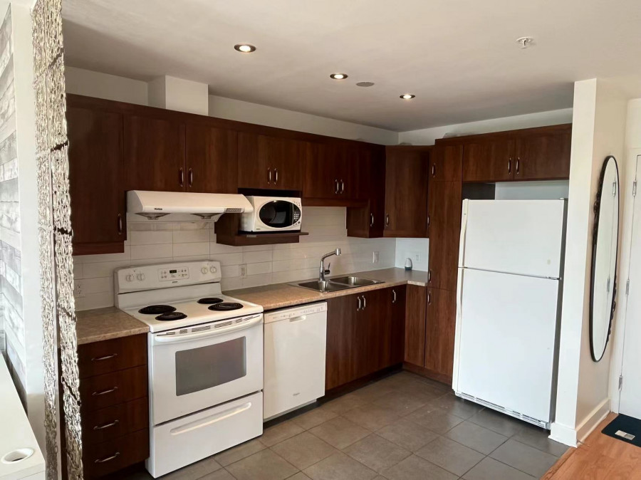 3个半, 房间全部朝南,落地玻璃窗,无遮挡,视野好(1个卧室/1个卫生间/1个厨房/客厅/阳台,卧室有壁橱), 位于7楼,大楼步行5分钟Angrignon地铁战站和多路公交总站,楼下步行范围内有:购物中心,银行,沃尔玛,麦当劳。华人超市,中国餐馆,托儿所在隔壁楼步行1分钟,就在小区内。租金是1650刀/月,包括:热水,地下车位,不包电费和网费。房间内包括:全新冰箱、全新洗烘一体机,炉头、空调,公寓带室内健身房,桑拿房。1年租约,物业规定租客不可养宠物。家具可议。